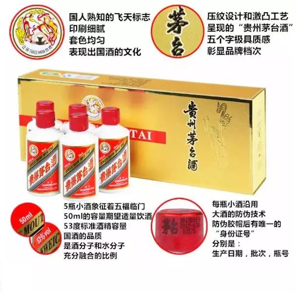 50ml條裝酒是袖珍版飛天茅臺酒。從投料到出廠要經(jīng)過30道工序165個工藝環(huán)節(jié),歷時五年之久。始終如一的品質(zhì)保證,加之茅臺酒不添加任何外來物質(zhì)、以酒勾酒的勾兌工藝是茅臺酒當(dāng)之無愧成為中國白酒的健康之宗,中國制造的國貨之魂,中國文化的國際之路。