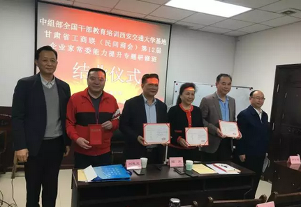 甘肅省工商聯(lián)(民間商會(huì))新一屆領(lǐng)導(dǎo)班子和領(lǐng)導(dǎo)機(jī)構(gòu)成員能力提升專題研修班于10月23日至27日在中組部中組部全國干部教育培訓(xùn)西安交通大學(xué)成功舉辦。甘肅省工商聯(lián)(民間商會(huì))副會(huì)長、我司董事長張建忠參加了此次專題研修班。