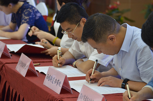 省市經(jīng)合局領(lǐng)導(dǎo)、500強企業(yè)代表、轄區(qū)重點企事業(yè)單位主要負責人、第二十三屆蘭洽會省市擬簽約重點項目企業(yè)代表、第二十三屆蘭洽會區(qū)專場簽約項目企業(yè)代表、銀行代表參加此次簽約儀式。集團常務(wù)副總冀晉作為重點項目代表出席簽約儀式。