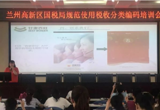 培訓(xùn)中,甘肅百旺九賦信息有限公司工作人員介紹了增值稅稅控開票軟件升級流程及使用稅控開票軟件的智能編碼(一鍵賦碼)功能,簡并稅率涉及的貨物范圍、農(nóng)產(chǎn)品進(jìn)項稅額抵扣難點、申報表填寫變化,力求納稅人會申報,申報準(zhǔn)。