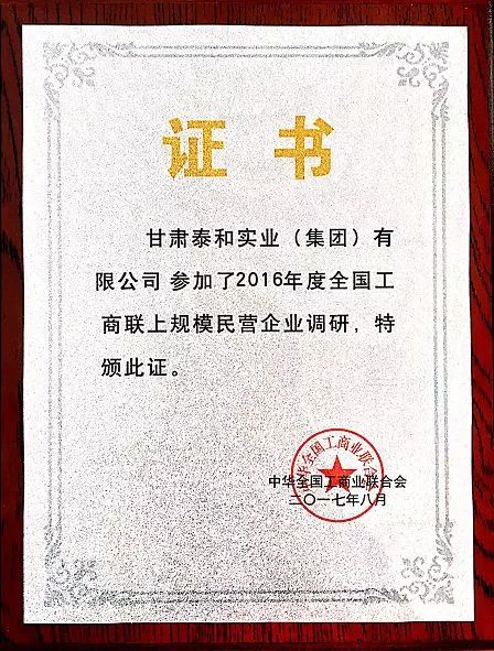 為了反映中國民營經(jīng)濟(jì)發(fā)展情況,全國工商聯(lián)開展第十八次上規(guī)模民營企業(yè)普查,并在普查排序基礎(chǔ)上發(fā)布“中國民營企業(yè)500強(qiáng)”。我司被中華全國工商業(yè)聯(lián)合會(huì)列為2016年度上規(guī)模民營企業(yè)調(diào)研單位。