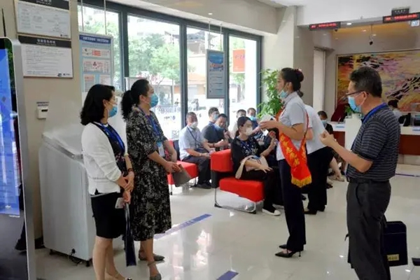 隨后,視察調(diào)研組一行參觀了市級文明單位蘭州銀行金城支行。在街道黨工委黨建集結(jié)號的引領(lǐng)下,蘭州銀行金城支行以文明精神引領(lǐng)業(yè)務(wù)發(fā)展,以文明力量推動經(jīng)濟(jì)管理,以文明信息指引服務(wù)前進(jìn),為居民群眾提供優(yōu)質(zhì)高效溫暖的金融服務(wù),力爭創(chuàng)建省級文明單位,代表和委員們現(xiàn)場體驗(yàn)了金融行業(yè)的貼心服務(wù)。