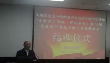 甘肅省工商聯(lián)(民間商會(huì))新一屆領(lǐng)導(dǎo)班子和領(lǐng)導(dǎo)機(jī)構(gòu)成員能力提升專題研修班于10月23日至27日在中組部中組部全國干部教育培訓(xùn)西安交通大學(xué)成功舉辦。甘肅省工商聯(lián)(民間商會(huì))副會(huì)長、我司董事長張建忠參加了此次專題研修班。