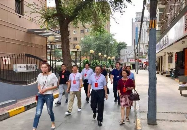 馮主任及市區(qū)人大代表一行首先來到酒泉路街道“巷往時光”城市管理一體化小街巷,并在街道講解員的詳細介紹下,全面參觀了解了酒泉路街道在結(jié)合轄區(qū)歷史文化的基礎(chǔ)上,通過統(tǒng)一門頭、統(tǒng)一標示、硬化路面、捆扎電線等舉措,對小街巷改造所做的各項工作。