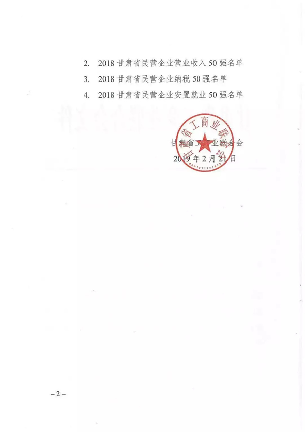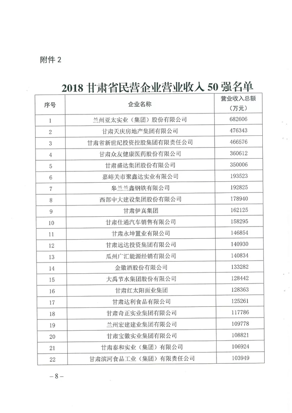 ★ 2018甘肅省民營企業(yè)營業(yè)收入50強(qiáng)榜單 ★