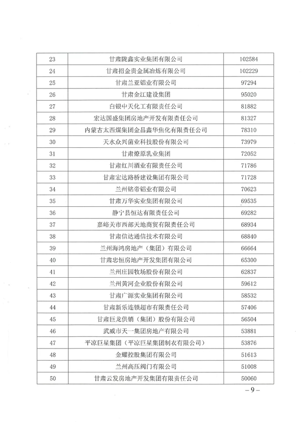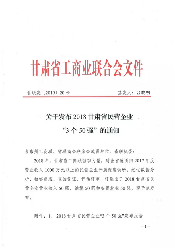 2018年甘肅省工商聯(lián)組織力量,對(duì)全省范圍內(nèi)2017年度營業(yè)收入1000萬元以上的民營企業(yè)開展深度調(diào)研,經(jīng)過數(shù)據(jù)分析、核實(shí)報(bào)表、查驗(yàn)憑證、評(píng)估評(píng)審,評(píng)選出了2018甘肅省民營企業(yè)營業(yè)收入50強(qiáng)、納稅50強(qiáng)、安置就業(yè)50強(qiáng)。