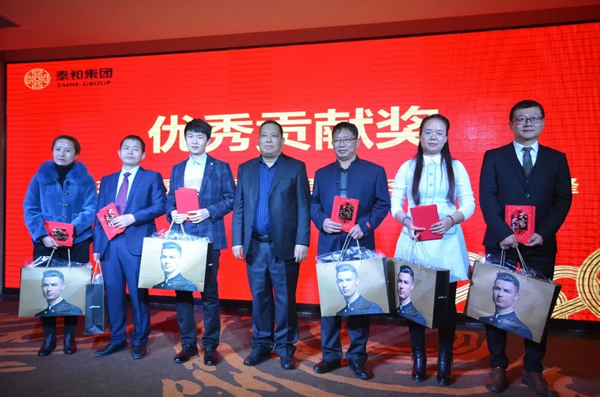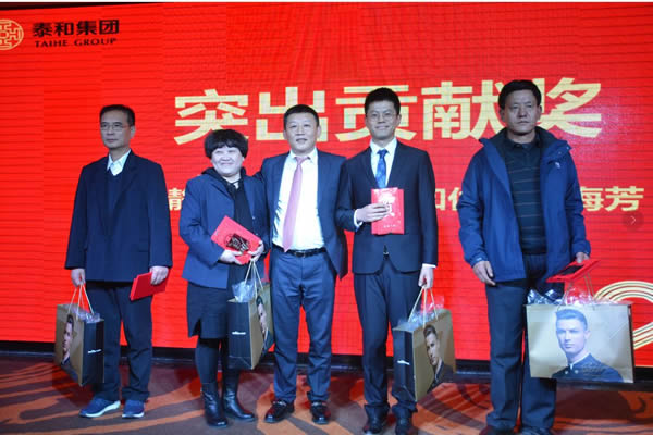 嘉賓甘肅辰基集團董事長李成勇、甘肅中鑫石化總經理張杰等與會領導分別為優(yōu)秀員工頒發(fā)了杰出貢獻獎、銷售冠軍、先進工作獎、優(yōu)秀貢獻獎、突出貢獻獎。新年新氣象,泰和集團將不忘初心,繼續(xù)前進,在新的一年實現新的跨越和發(fā)展,助推企業(yè)走向高質量發(fā)展道路,為甘肅經濟社會發(fā)展做出更大的貢獻。